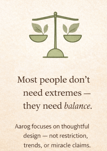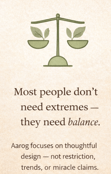 Good health isn’t built through extremes or restrictions. It’s built through better everyday choices. Aarog focuses on thoughtfully designed daily foods —